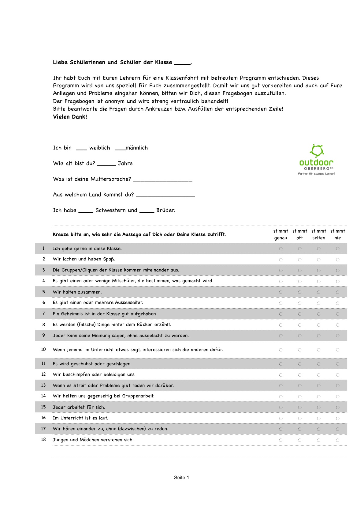 Hier bieten Wir Ihnen einen Fragebogen sowie den passenden Auswertungsbogen an.
