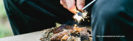 Zunächst erfahrt ihr Wichtiges im Umgang mit Feuer. Mit einer feurigen Aufwärmaktion geht es dann gleich einmal los. Mit diesem Wissen macht ihr euch im Anschluss daran, auf verschiedenen Wegen Feuer zu machen. Dabei stehen Euch verschiedene Materialien zur Verfügung. Natürlich kommt es auf den richtigen Zunder an, den ihr in der Natur finden könnt.